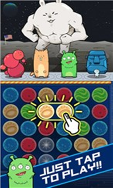 1、游戏设置了独特的连击系统,如果玩家能够持续点击成功,可以累积一个高连击,触发更强大的攻击效果和更夸张的动画表现。2、玩家需要策略性地消除不同颜色的行星,每种颜色代表不同的攻击属性,合理搭配才能发挥最大威力。3、游戏中设计了各种可爱搞笑的外星盟友可供收集,每个盟友都有独特的技能和搞怪表情,为游戏增添了更多趣味性。
