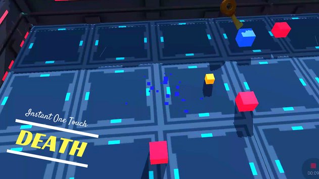 玩家需要控制一个足球形状的角色在各种封闭式迷宫中冒险。迷宫中分布着三种关键方块:绿色方块是通关目标,红色方块是致命障碍,蓝色方块则是救命稻草。红色方块的移动方式千变万化,有些会沿着固定路线巡逻,有些则会随机游走,甚至还会突然加速追击玩家。蓝色方块可以暂时冻结附近的红色方块,为玩家争取宝贵时间。游戏采用非线性关卡设计,玩家需要先找到钥匙才能开启通往绿色方块的大门。随着游戏进行,还会出现需要特定顺序触发的机关谜题,大大增加了游戏的可玩性。