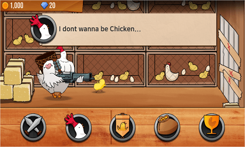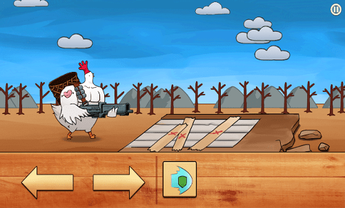 游戏采用卡通萌系画风,玩家将操控一只英勇的战斗鸡,与企图捕食鸡群的人类展开激烈对抗。你的终极目标是摧毁那些贩卖鸡肉的店铺,解放所有被囚禁的同伴。游戏支持多人联机模式,可以邀请好友一起组建强大的鸡群战队。操作方式简单直观,通过屏幕下方的左右箭头控制移动,中间的按钮则用于发射武器攻击敌人。随着关卡推进,玩家可以解锁更多造型各异、能力独特的小鸡伙伴,组建属于你的最强战斗鸡阵容。
