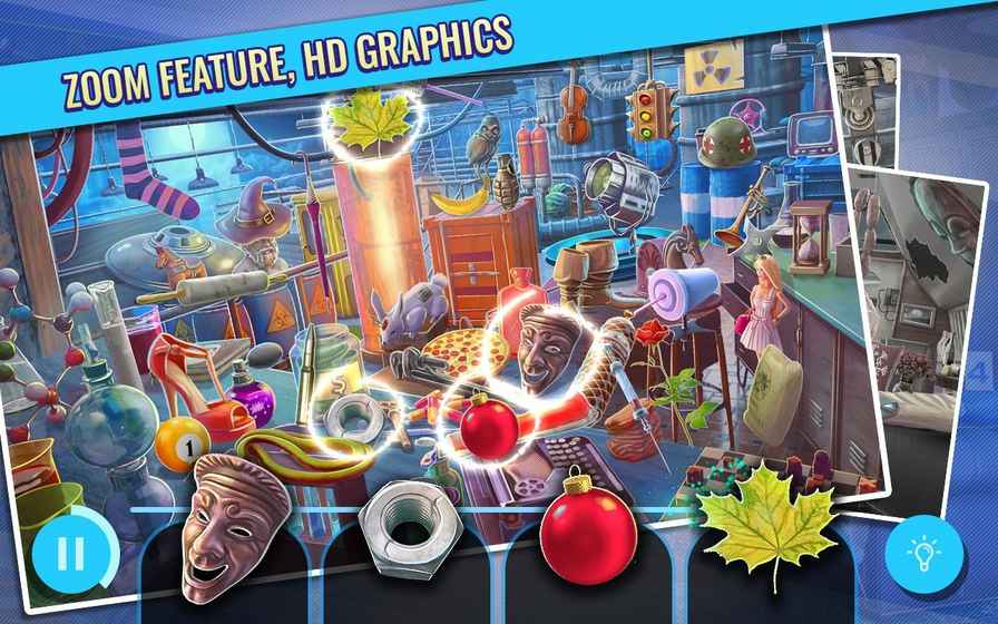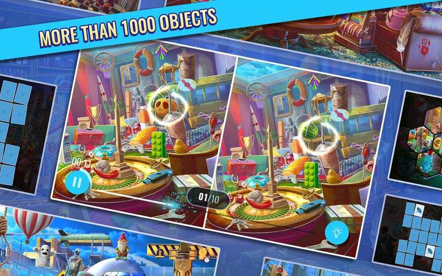 游戏拥有超过1000个隐藏物品,分布在多个犯罪现场中,考验你的观察力和耐心。支持15种语言的翻译功能,让全球玩家都能轻松上手。游戏设计了多个关卡和不同的解谜玩法,包括放大或缩小画面以寻找物品的独特机制。逼真的音效为游戏增添了沉浸感,让隐藏的物品更加生动。此外,游戏中还加入了令人上瘾的迷你游戏,为解谜过程增添了更多趣味性。无论是画面、玩法还是音效,都让这款游戏成为隐藏物品类游戏中的佼佼者。