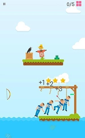 1、点击划动开始游戏,用手指滑动屏幕射箭救人,注意控制力度和方向,确保箭矢能准确命中绳索,避免人质掉入水中造成失败。操作虽简单但需要反复练习才能掌握技巧。