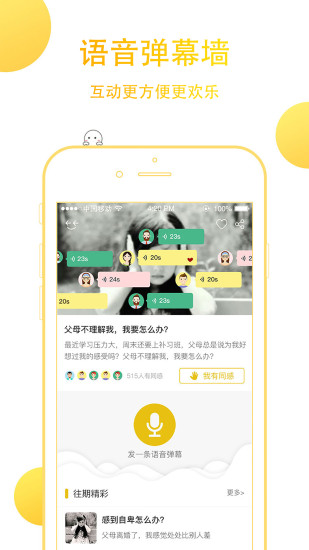 全新设计的首页界面采用清新活泼的视觉风格,更符合青少年的审美偏好。心事门功能升级,现在可以创建更多主题的私密空间,让交流更加深入。新增的秘密信箱支持用户间匿名交换心事,拓展社交支持网络。弹幕墙功能全面升级,同时支持语音和文字两种表达方式,互动体验更加丰富。此外,本次更新还优化了多项操作流程,使应用运行更加流畅稳定,强烈推荐用户更新体验。