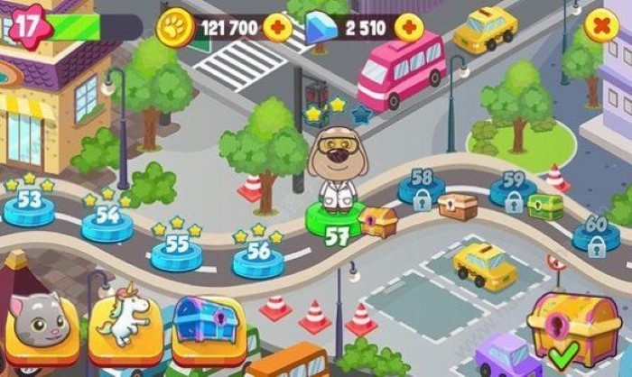 2.收集系统让跑酷过程充满惊喜,除了常规金币外,每个场景还隐藏着特殊糖果和钻石。这些收集品不仅可以用来解锁新角色和皮肤,还能兑换稀有道具。特别值得一提的是,某些限定皮肤只能通过收集特定数量的糖果获得,大大增加了游戏的收集乐趣。
