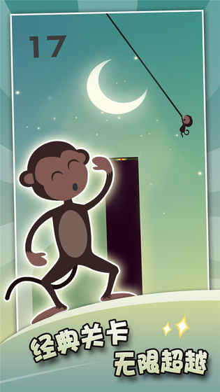 游戏的操作看似简单实则充满技巧性,玩家需要长按屏幕蓄力,观察小猴子的摆动轨迹,在最佳时机松开手指完成跳跃。每次跳跃的力度和角度都会影响最终落点,这要求玩家必须不断练习才能掌握其中的诀窍。游戏还特别设计了物理反馈系统,让每一次跳跃都充满真实感,玩家可以明显感受到不同力度带来的不同效果。