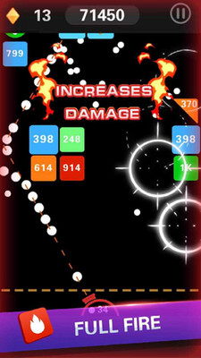 1、滑动手指控制发射方向,通过瞄准线精准发射小球,击碎屏幕上的方块,考验玩家的策略思维和反应能力;