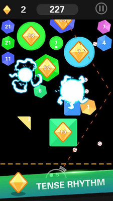 2、在方块下落到底部前尽可能多地击碎它们,这是获得高分的关键,随着关卡推进,方块下落速度会逐渐加快;