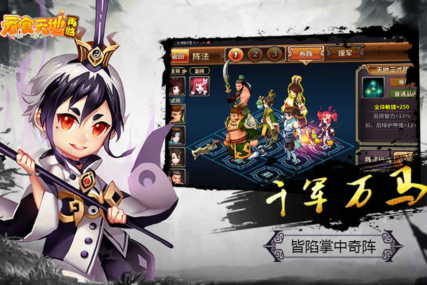 《吞食天地再临》是一款拥有百余款武将、多重玩法的卡牌策略游戏,精心打造的游戏内容力求将您带回原汁原味的吞食天地世界。游戏中的三国背景虽然与《三国演义》大体相同,但许多设定都会超乎你的想象。比如刘关张三人组就与传统的形象大相径庭:刘备变成了一个热情的推销员,关羽因为沉迷胭脂变成了红脸,而张飞依然是那个只会说"俺也一样"的暴躁老哥。游戏采用经典的回合制战斗系统,玩家需要合理搭配武将阵容,运用策略击败敌人。除了主线剧情外,游戏还提供了丰富的支线任务、武将收集、装备强化等多种玩法,让玩家能够全方位体验三国世界的魅力。