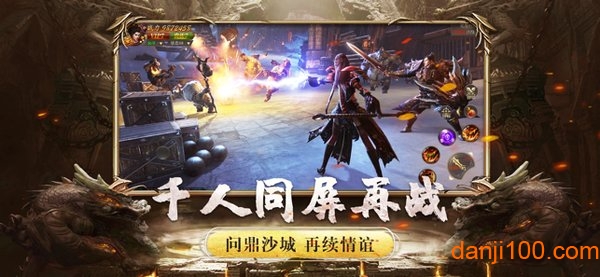 2.千人同屏再战,问鼎沙城,再续前缘。经典的沙巴克攻城战全面升级,支持千人同屏混战,完美还原传奇经典场景。