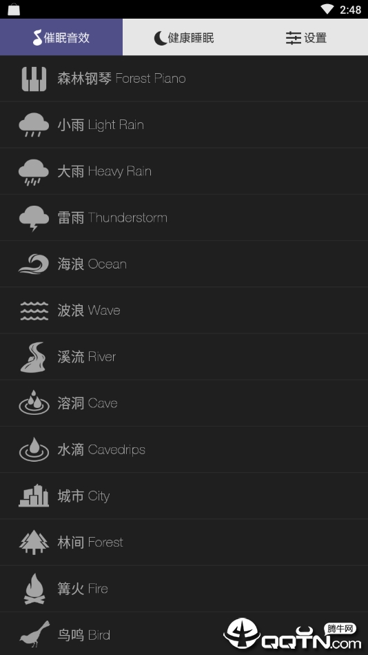 3、精心收录超过500种高品质音源,除常见的自然声音外,还包括专业录制的ASMR触发音、各国民谣改编的催眠曲目,以及根据昼夜节律定制的动态声音场景,满足不同用户的个性化需求。