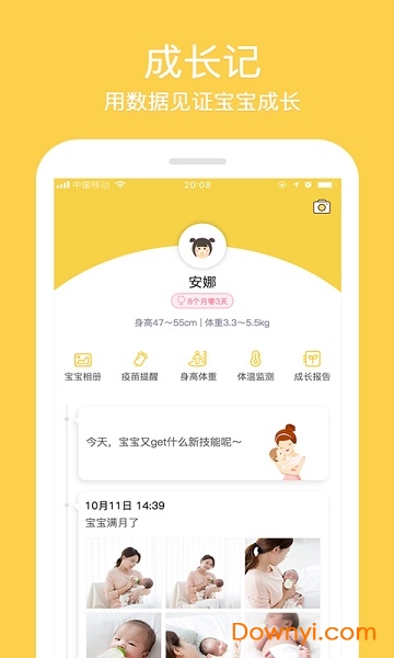 宝宝记:智能生成图文并茂的成长档案,自动记录身高体重变化、第一次翻身等里程碑时刻,支持添加自定义标签和语音备注,打造专属的电子成长相册。