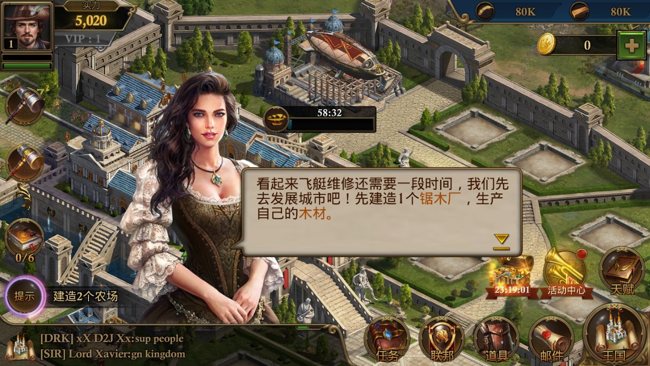 3、在你城池的周围去建造生产粮食木头和石材的工坊,不断的升级能够提升每日获得资源的开采量,让你不用担心资源的紧缺。高级工坊还能生产特殊材料用于研发新科技。资源贸易系统允许玩家之间互通有无,形成完整的经济生态。