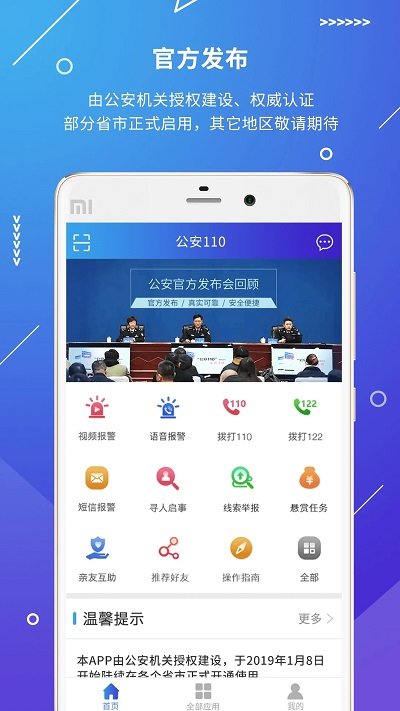 公安110客户端是一款由公安机关推出的便民服务软件,专为全省市民设计,旨在提供高效便捷的线上报警与警务服务。当您遇到紧急危险或发现违法犯罪行为时,只需轻点手机即可一键报警,系统将自动定位您的位置并快速联动警方处理,全力保障您的生命财产安全。该应用整合了多媒体报警、线索举报、亲友互助等实用功能,支持视频、语音、静默等多种报警方式,满足不同场景需求。同时提供掌上户政查询、附近警务机构导航等便民服务,让警民互动更智能、更高效。