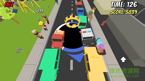 1.你是一个虚空,你的嘴是一个洞,你吃人。你吃车。你吃了死者的坟墓,当你吃饱了,你的嘴洞变得越来越大!游戏中的吞噬系统设计非常有趣,从最小的物体开始吞噬,随着体积增长,可以吞噬更大的目标,这种成长感给玩家带来极大的成就感。
