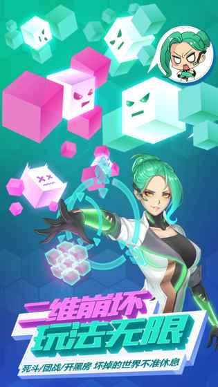 《方块大碰撞》是一款极具创意的二维崩坏逃杀手游,将策略对战与角色扮演完美结合。在这个充满未来科技感的方块世界中,玩家将扮演一枚具有特殊能力的小方块,在实验室、太空站、沙漠绿洲、糖果乐园等风格迥异的场景中展开冒险。每局游戏仅需几分钟,但充满紧张刺激的对抗体验。你需要实时调整方块的形状和角度,巧妙搭配英雄伙伴的专属技能,并通过吸附战场上的小型资源来不断强化自己。最终可以选择主动出击,用精准的撞击摧毁敌方核心方块;也可以选择稳健发育,成为战场上最耀眼的存在。
