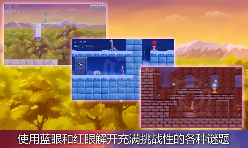 使用蓝眼能力和红眼能力探索超过30个别出心裁的关卡。每个关卡都经过精心设计,从简单的空间转换到复杂的多重维度谜题,难度曲线合理而富有挑战性。后期关卡将考验玩家对多种能力的综合运用能力。