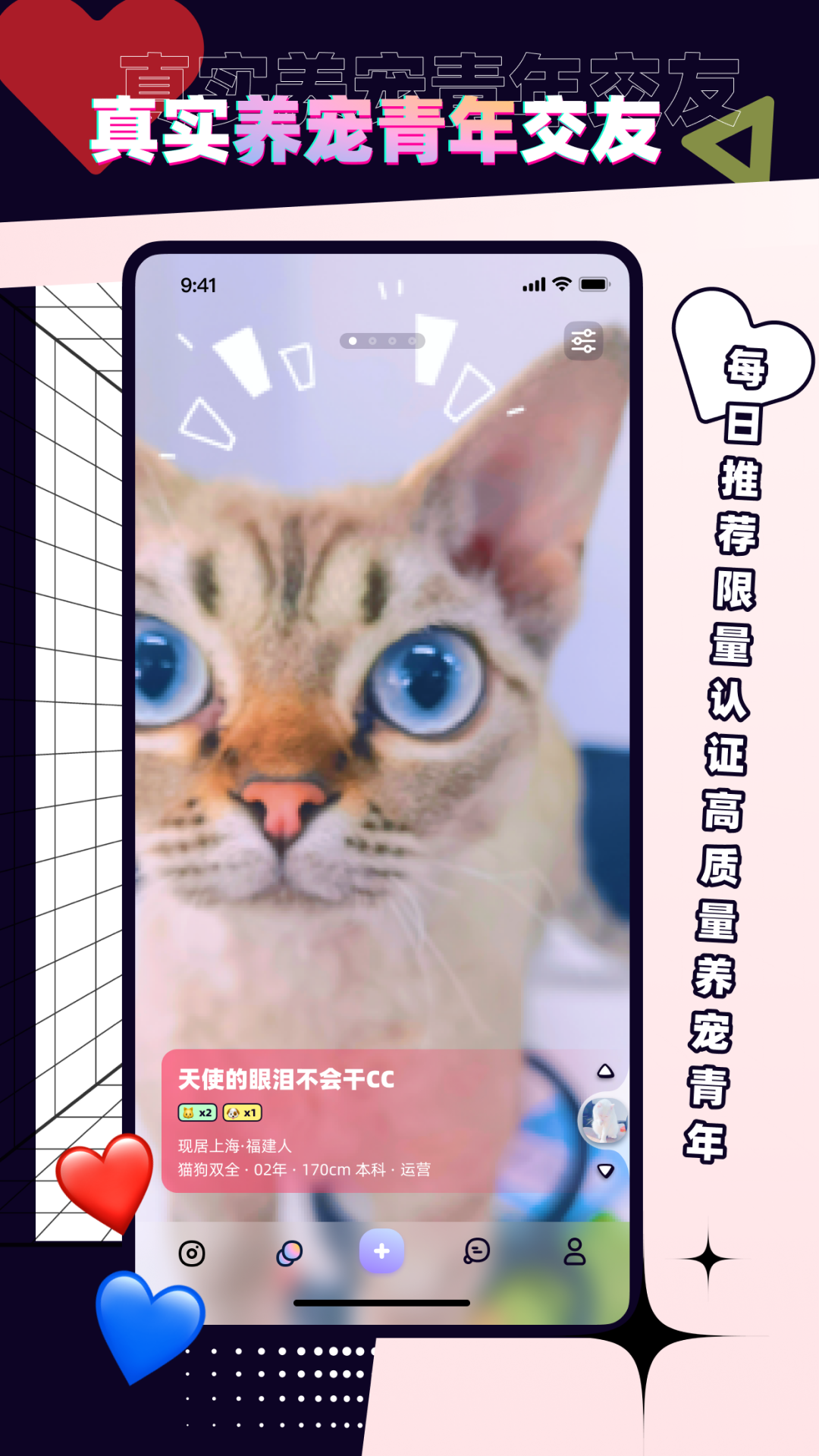 市面上交友软件众多,如探探、Soul等,但PetPet陪陪专注于为宠物爱好者打造专属社交空间。与其他泛社交平台不同,PetPet结合铲屎官们的需求,设计了多种趣味功能,满足爱宠人群的独特社交需求。在这里,你可以轻松找到志同道合的宠友,分享养宠的快乐与烦恼。平台注重真实交友体验,通过严格的认证机制确保用户安全,让每一位爱宠青年都能放心社交,享受纯粹的宠物社交乐趣。