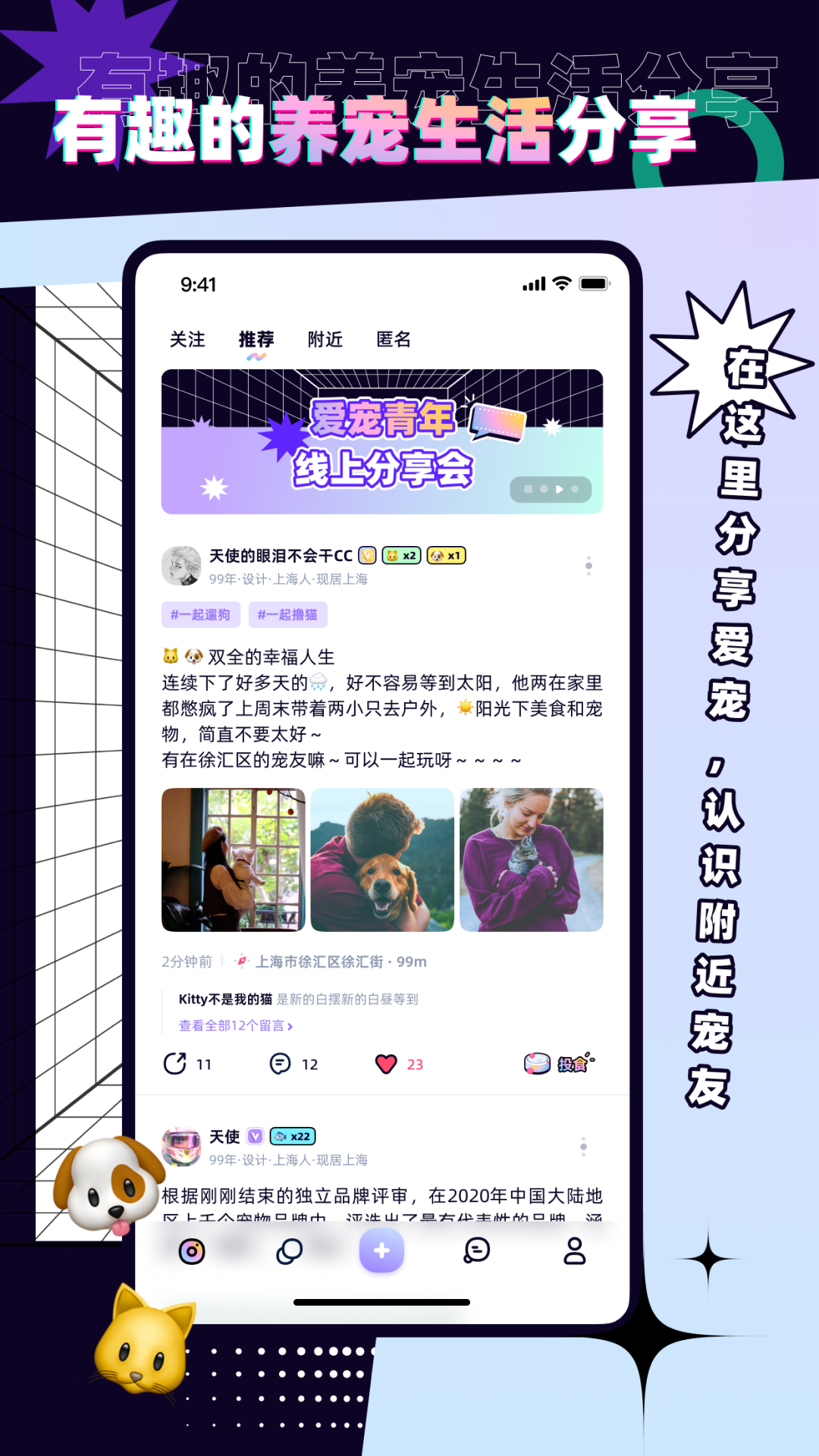 智能匹配宠友:根据你的兴趣爱好和养宠习惯,PetPet会为你推荐合适的爱宠青年,帮助你快速找到志趣相投的朋友。