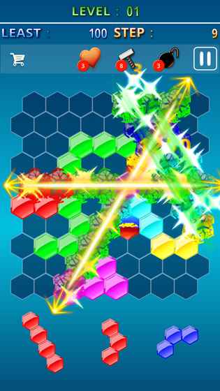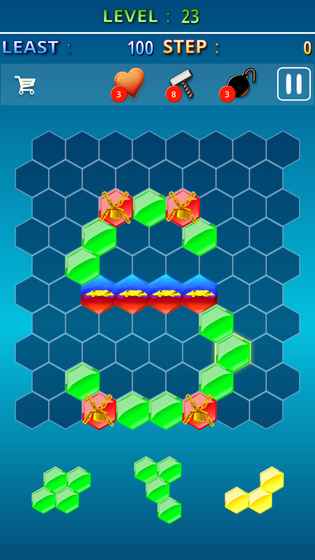 《粉碎的六宝石》是一款极具创意的益智消除手游,将俄罗斯方块与六边形消除玩法完美结合,带来前所未有的烧脑体验。游戏采用独特的六边形棋盘设计,玩家需要巧妙放置不同形状的积木块,通过填满任意方向的行列来完成消除。精心设计的数百个关卡各具特色,配合锁具、铁块等特殊障碍物,让每关都充满挑战性。极简清新的画面风格搭配轻松愉悦的音效,无论是休闲玩家还是解谜爱好者都能找到乐趣。游戏节奏明快,一局只需几分钟,却能带来持久的成就感,绝对让你爱不释手。