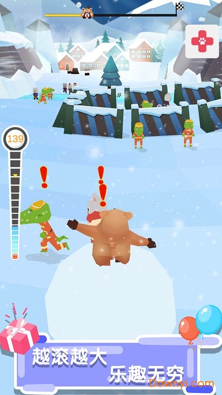 1、作为雪崩镇圣山的守护者,你需要精准控制雪球在受控动物身上滚动的轨迹,每个成功的净化都会为小镇带来新的居民,这种成就感无与伦比;