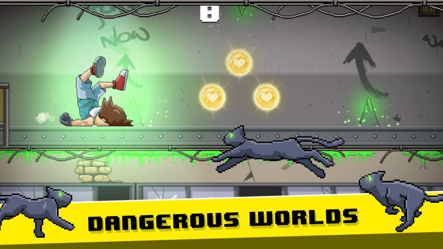 在一个被遗弃的卡特城中,玩家将跟随主角Ray展开一场惊心动魄的跑酷冒险。这座曾经繁华的城镇如今已变成充满危险的废墟,到处都是放射性物质和被感染的变异猫群。Ray作为土生土长的本地人,对这座城镇的每一个角落都了如指掌。他不仅掌握着高超的跑酷技巧,更知道城镇中隐藏着大量珍贵的金币和宝藏。玩家需要帮助Ray在危机四伏的环境中穿梭,避开各种障碍物和危险生物,同时收集尽可能多的金币。游戏通过生动的像素画面和丰富的环境细节,完美呈现了这个末日城镇的独特氛围。