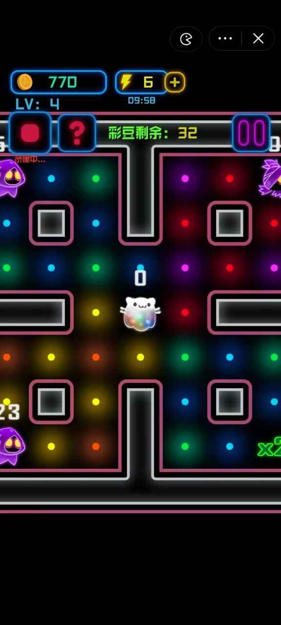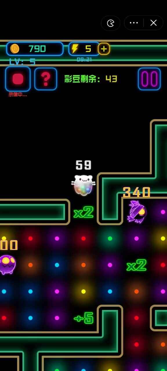 2、【吃金豆玩法】核心玩法围绕收集金豆展开,每个关卡都设置了三个金豆作为主要目标,玩家需要巧妙运用走位和道具,突破重重障碍到达终点。