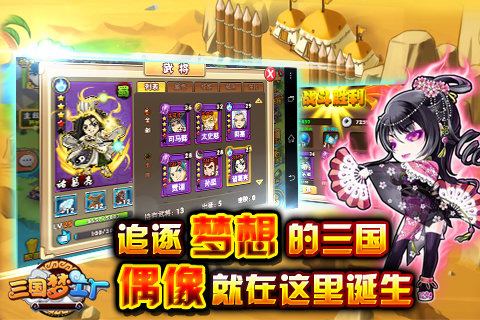 4、游戏采用日系漫画渲染技术,Q版武将设计既保留历史人物特征又增添萌趣元素,战斗场景加入粒子特效与动态镜头;