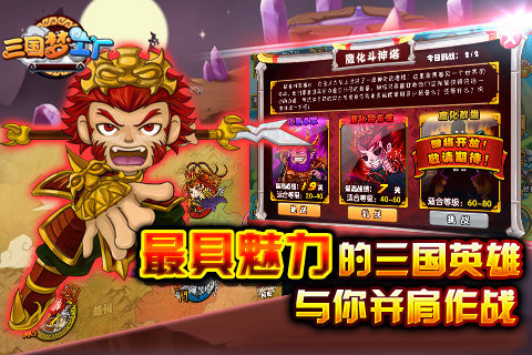 游戏收录200+三国名将,每位武将都拥有符合史实的专属技能与羁绊关系。独创的"情缘克制"系统让战斗充满变数——貂蝉的离间计可削弱吕布战力,太史慈的箭阵能压制曹操骑兵。武将可通过升星、觉醒突破成长极限,搭配自由转职系统实现百种战术组合。