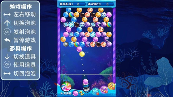 3、炮台颜色切换功能是制胜关键,点击发射器可循环切换当前泡泡颜色,提前规划色彩搭配才能创造大规模消除机会。建议新手先在低关卡练习预判和换色时机。