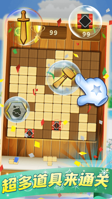 4、游戏设计了完善的积分系统,每个关卡都有特定的积分目标。玩家需要通过合理的方块放置和连锁消除来达成目标,成功后将获得金币、道具等丰厚奖励。积分排行榜功能让玩家可以与全球玩家一较高下。