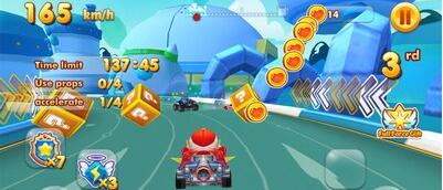 1、在游戏的赛道上有着各种随机BUFF道具和陷害武器。这些道具会随机出现在赛道各处,包括加速道具、护盾、导弹等,合理运用这些道具可以扭转比赛局势。