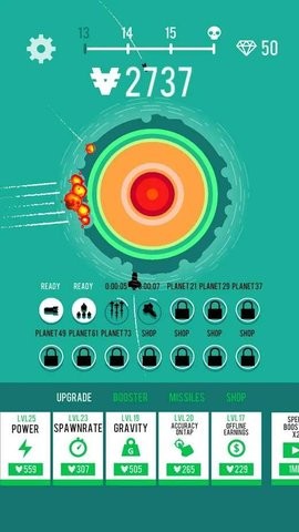 2、各种的关卡可以去进行解锁使用,金币解锁更多的飞船导弹;游戏包含超过100个精心设计的关卡,每个关卡都有独特的目标和评分系统。通过收集金币,玩家可以解锁包括量子导弹、反物质炸弹在内的数十种毁灭性武器。