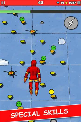 1、成长系统设计完善,通过游戏内货币可以解锁20多种角色皮肤和15类特效岩壁,持续提供收集乐趣。2、幽默元素贯穿始终,角色在特定情况下会做出夸张的表情和动作,配合搞笑的音效设计令人忍俊不禁。3、社交功能支持成绩分享和实时排行榜,玩家可以与好友一较高下,激发良性竞争乐趣。