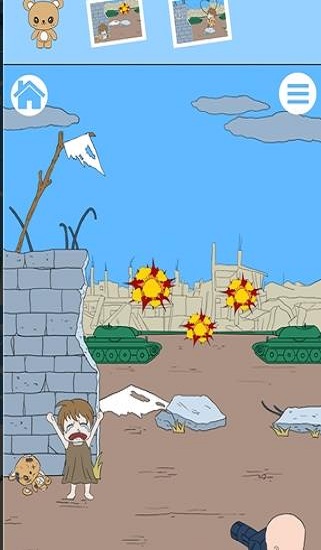 提示:不要点"hope",它是个骗子,会让你瞬间失败的。首先拿到窗台上的书。然后将书打开,找到钻机。接着拿过来在睡觉的这间房子的墙壁上钻一片完整的石块,然后点击收取,犹如左上角。最后过来撕开壁画,用前面获取的石块填补这个漏洞。这一关设计最为复杂,需要完成多个步骤的连锁解谜,每个步骤都要仔细思考物品的用途。