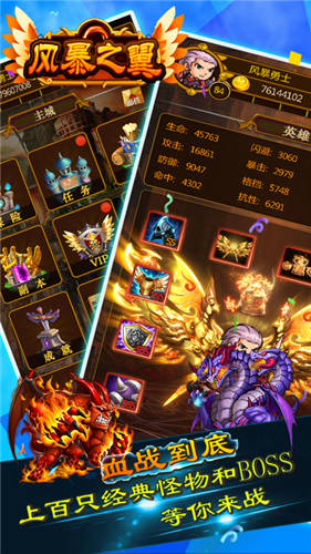 2、几十个章节上百只不同怪物和BOSS等你来挑战,怪物图鉴,等你来开启;游戏设计了丰富的怪物种类,从普通小怪到史诗级BOSS应有尽有。击败它们可以获得稀有材料和装备。