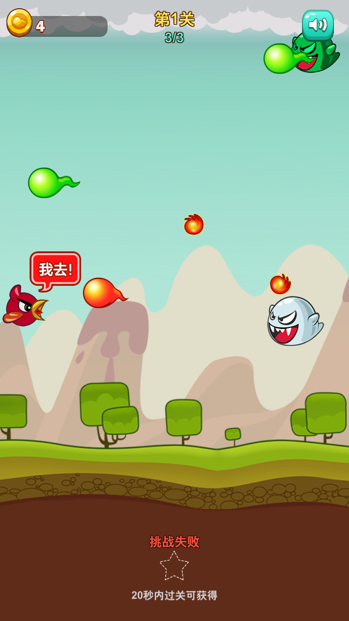 《玩鸟过火》是一款极具挑战性的休闲射击游戏,玩家将操控一只会喷火的小鸟展开惊险刺激的冒险之旅。通过点击屏幕,小鸟会向上跳跃并发射火球,你需要灵活躲避怪物喷吐的火球攻击,同时精准射击消灭敌人。游戏提供两种精彩模式:关卡模式包含30个精心设计的关卡,每关都有独特的敌人配置;无尽模式则考验玩家的持久作战能力,随着时间推移难度会不断提升。精美的画面、简单的操作和丰富的玩法,让这款游戏充满无限乐趣,快来体验这场火与火的激情对决吧!