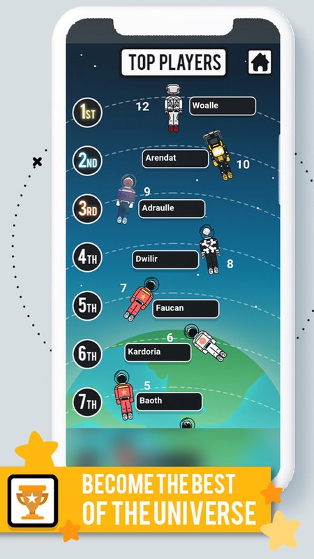 1、游戏将带你体验一场震撼的太空冒险,感受在浩瀚宇宙中探索的乐趣。精美的画面和特效让每一次上升都充满视觉冲击力。