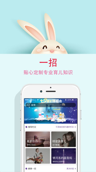 1、一招:每天为妈妈们推送由育儿大咖精心制作的育儿灵感,内容涵盖科学喂养、早期教育等各个方面,提供专业且个性化的育儿建议,让每位妈妈都能获得专属的育儿知识服务,轻松解决育儿困惑。
