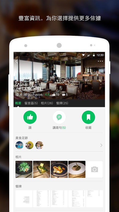 智能搜索:采用先进的语义分析技术,支持多种搜索方式,包括按菜系、位置、价格等条件筛选,还能根据你的历史偏好智能推荐可能感兴趣的餐厅,大大提升找餐厅的效率。