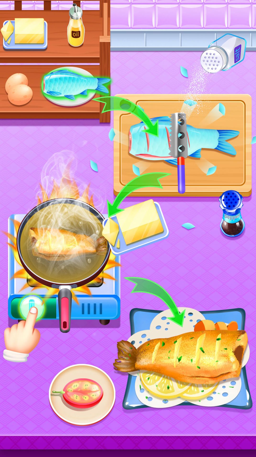 3、场景设计极具代入感,从家庭厨房到高级餐厅,每个场景都经过精心打造。动态光影效果和逼真的食材质感让烹饪过程赏心悦目。