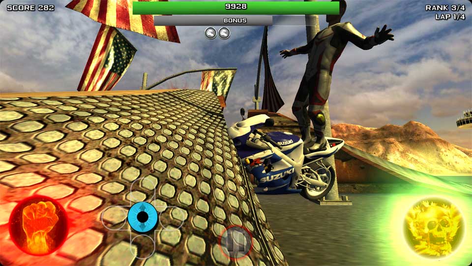 深度改装系统允许玩家从300多个零件组装专属座驾,每辆摩托都有独立的经验值成长树。传奇武器库包含电锯、火焰喷射器等20种特殊装备,通过配件组合可创造出冰冻子弹等独特攻击效果。车库系统支持多车辆同时培养,不同赛事需要搭配相应属性的摩托才能发挥最大战力。