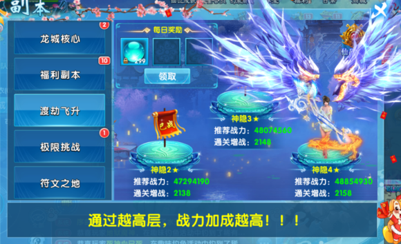 仙骑免费送:完成七日任务可永久解锁"青鸾"飞行坐骑,该坐骑拥有全游戏最快的巡航速度。坐骑系统包含养成玩法,通过喂食灵果可进化出炫酷的火焰尾迹特效。