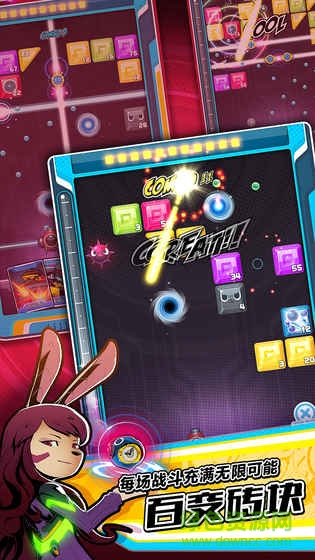 2、精心设计了上百个难度递增的关卡,每个关卡都有独特的砖块排列和机关设置,玩家需要灵活运用弹球物理特性和卡牌技能来突破重重障碍,通关后还能获得丰厚奖励;