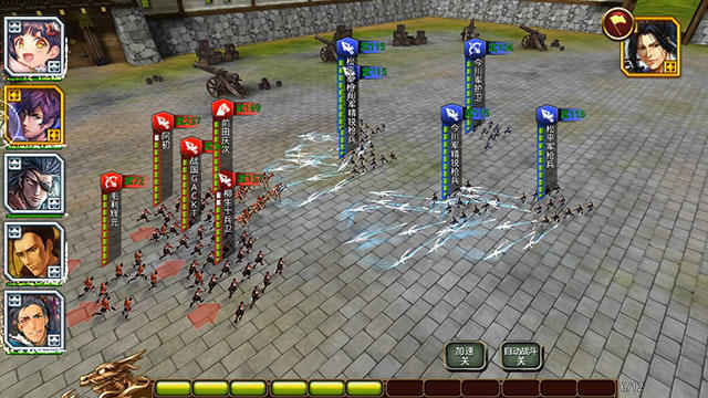 3、【名将云集,乱世情缘组合】兵种克制加入"三段击"机制,火枪队对骑兵有额外伤害但装弹时间较长。攻城战允许使用攻城槌、云梯等器械,守城方则能触发"热油浇灌"等守城指令。特别设计了"武士道"系统,满足条件可触发切腹明志的悲壮剧情。