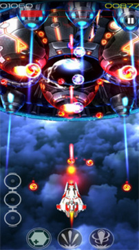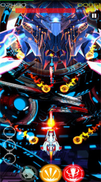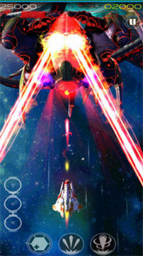 2、玩家可以通过武器按钮发射强力攻击,也可以使用右下角的加速按钮让战机瞬间冲刺。这个冲刺技能不仅能快速移动,还能在关键时刻躲避敌人的密集火力。游戏还设计了多种特殊技能,需要玩家合理运用才能战胜强大的敌人。