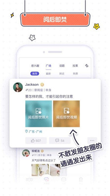 1、许个愿功能让交友充满趣味性,你可以发布心愿等待他人实现,也能浏览他人的愿望列表,通过互动拉近彼此距离。2、平台严格筛选优质用户,所有认证信息均经过人工审核,确保真实可靠,有效减少骚扰现象。3、独创的阅后即焚功能,照片、视频、音频查看后自动删除,完美保护用户隐私。4、匿名广场让你畅所欲言,可以分享平时不敢说的心里话,找到共鸣者。5、马甲身份系统让你无需露脸也能愉快交流,用语言魅力打动他人。