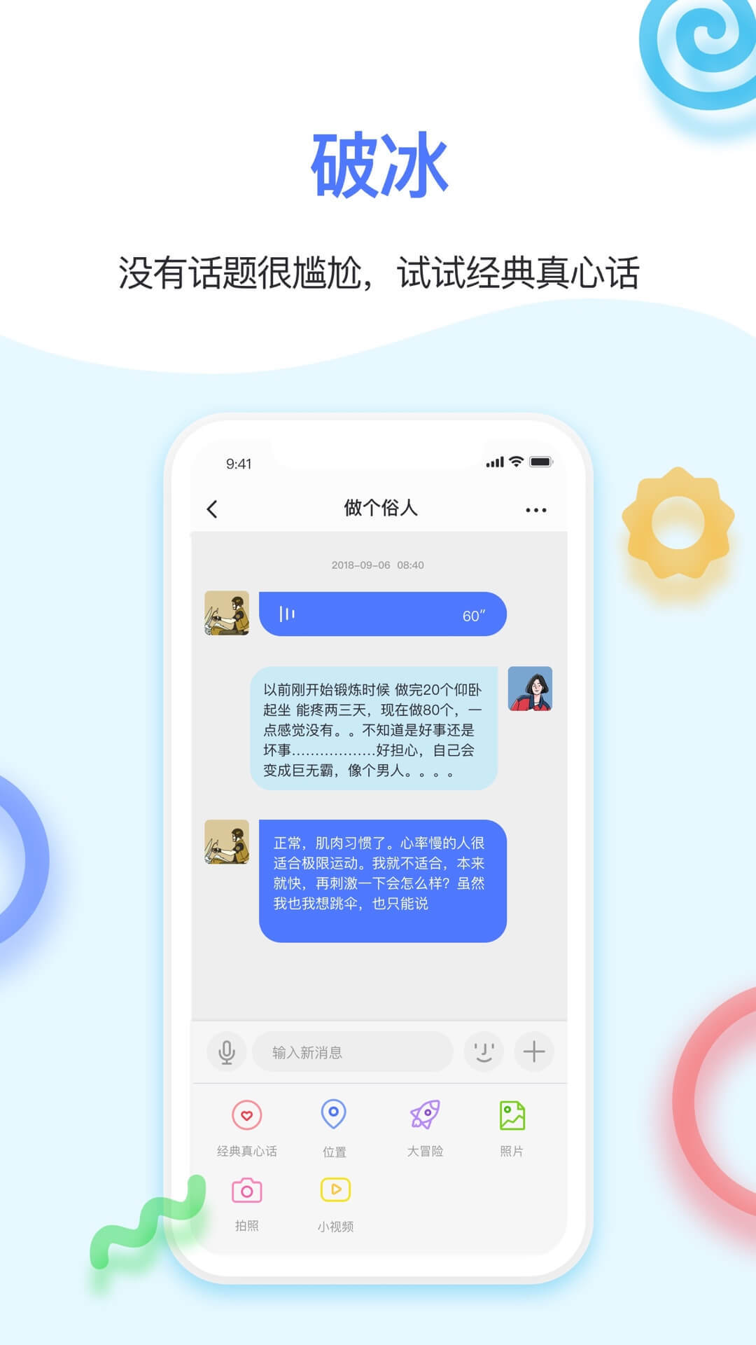 【趣味破冰功能】内置上百个真心话话题和互动小游戏,从兴趣爱好到生活哲学,帮你轻松打开话匣子,化解初次交流的尴尬,让相识过程自然又有趣。