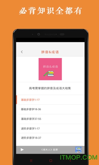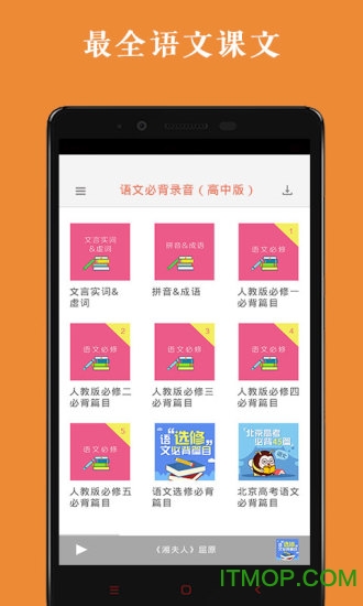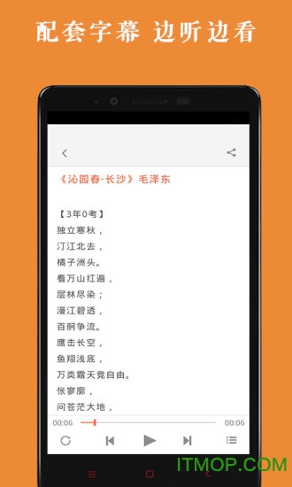 收录全国各版本教材所有必背篇目,内容权威全面;采用分段记忆法,将长篇课文分解成易记片段;所有录音同步显示字幕,支持中英文对照;可按课文、作者、朝代自由筛选,创建个性化播放列表;后台播放功能让用户可以利用碎片时间反复聆听,加深记忆。