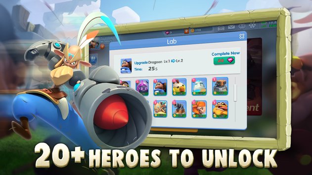 值得一提的是,《Clancraft》中的每个角色都有着属于自己的不同技能。例如死神的必杀技"深渊呼唤",用夸张的巨炮,收割着一个个灵魂,是强力的输出技能;而ACE的技能"区域轰炸",向天鸣枪,呼叫轰炸机对敌方全体造成大量伤害,是非常实用的AOE系技能;护士、天使等角色还拥有着加血与加BUFF的辅助技能,根据自己队伍的英雄配置,对技能按优先级进行培养,将在战场上更具优势。