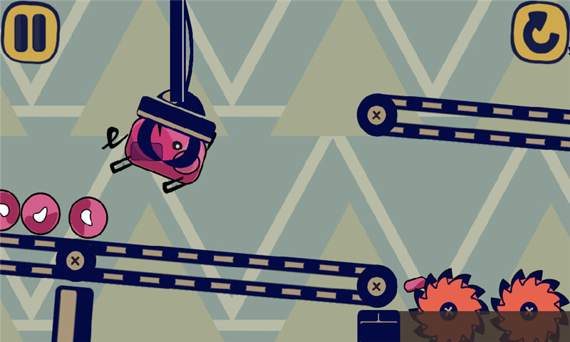 游戏采用极简主义的美术风格,用高对比度的色彩和夸张的造型营造出独特的视觉冲击力。每个场景都经过精心设计,从滴着血水的肉钩到冒着热气的香肠灌装机,处处透露着令人会心一笑的黑色幽默。音效方面更是别出心裁,小猪惊慌的哼哼声、机器运转的轰鸣声、刀具碰撞的铿锵声共同谱写成一首惊险刺激的逃亡交响曲。操作方式提供手势滑动和虚拟按键两种模式,玩家需要根据场景灵活选择——有时要快速划屏让小猪紧急刹车,有时要长按按键助跑跳跃。50个难度递增的关卡将逐步解锁,后期关卡需要玩家同时应对多重机关的组合攻击,充分考验手眼协调能力和应变能力。