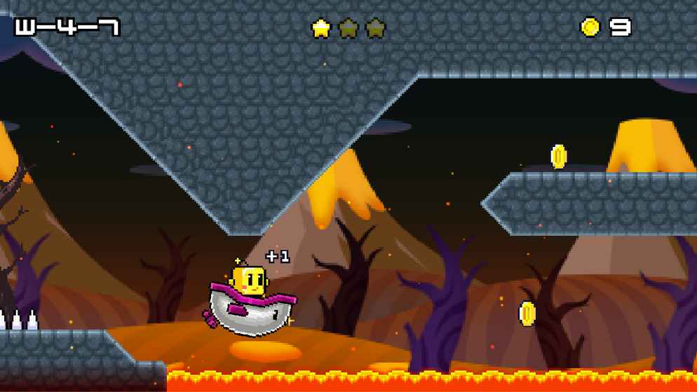 游戏采用直观的触控操作,点击屏幕即可让角色跳跃。随着游戏进程,玩家可以解锁多个特色角色,每个角色都拥有独特的技能。IRON角色可以在跳跃时发射导弹攻击敌人,点击次数越多发射的导弹数量越多;BIG角色则具备充气漂浮能力,长按屏幕可以让角色在空中缓慢下落。游戏还设置了丰富的成就系统,收集星星不仅能获得奖励,还能解锁隐藏内容。此外,游戏还支持全球排行榜功能,玩家可以与全世界的玩家比拼通关时间和分数,增加了游戏的竞技性和可重玩价值。